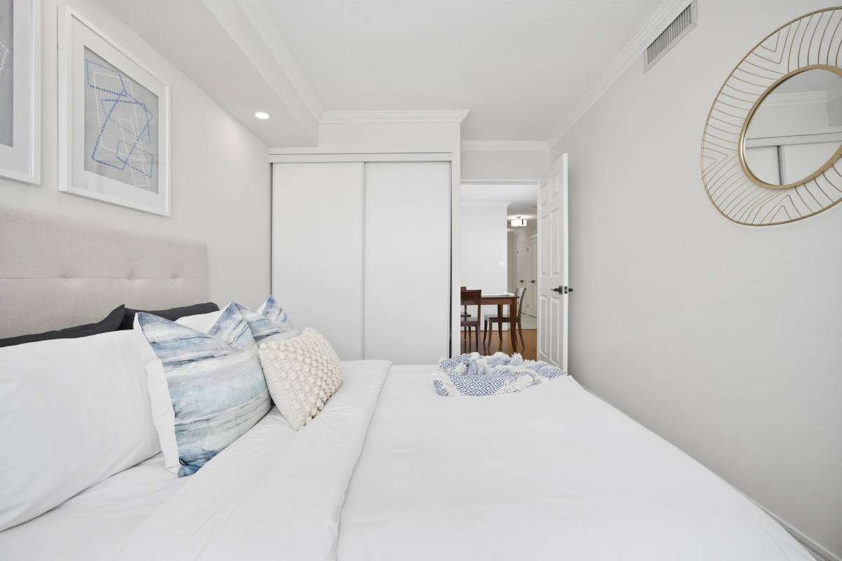 A rare opportunity that combines ideal location, spacious floor plan and spectacular city view, that is beautifully renovated. Welcome To Ridley Boulevard II, One Of North York’s Finest Condo Communities! This Established Lawrence Manor Complex Is A Target Of Both Downsizers & Young Families Alike Who Covet Larger Spaces In Traditional, Well-Maintained Mature Buildings, With Great Amenities, Reasonable Fees, & Gated Front Entrance. This Sought-After South-Facing 2 Bedroom and Den Layout Spans 1,100 Square Feet With Brilliant Sunlight and Stunning City View. Newly-Renovated Kitchen With Quartz Counters, Brand New Stainless Steel Appliances, Updated Cabinetry & Lighting, Newly-Renovated Bathrooms with Brand New Vanities, Toilets and Lighting as well as Brand New Washer & Dryer. Split Bedroom Floor Plan Offering Over-Sized Primary Bedroom, Featuring Walk-In Closet, Ensuite Bathroom Plus Inviting Den. Underground Parking & Locker Included. Exceptional Building Amenities Include Outdoor Pool, Sauna, Gym, Party Room, Concierge & Gate House, & Visitor Parking. Easy Access to Transit, Highway and Shops and Restaurants of Avenue Road. You Are Bound to Love It!